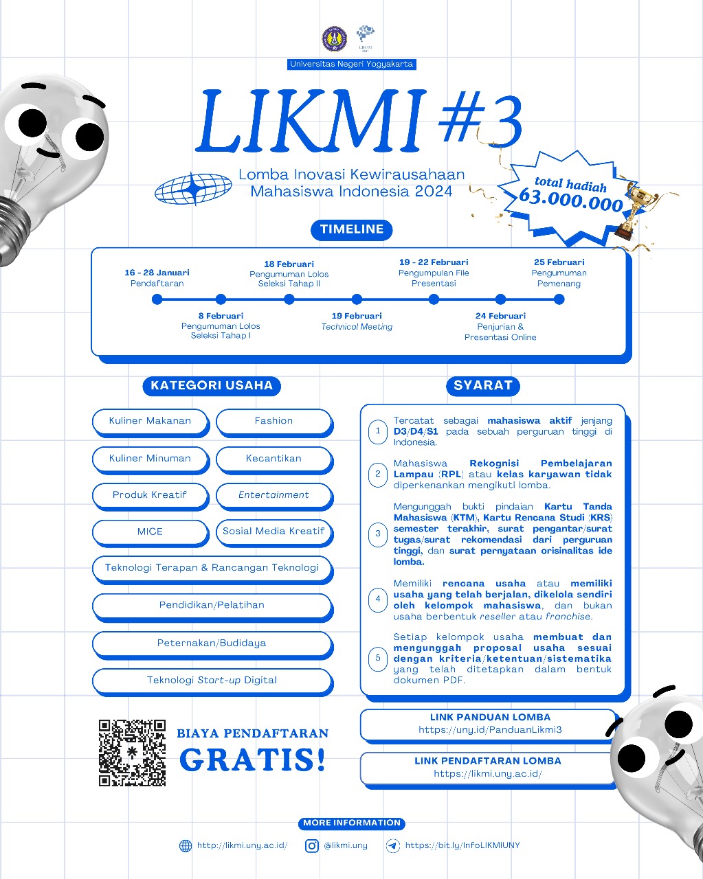 Universitas Negeri Yogyakarta berkomitmen mendukung penguatan perekonomian Indonesia melalui program pengembangan wirausaha di perguruan tinggi. Oleh karena itu, melalui bidang Akademik dan Kemahasiswaan, Universitas Negeri Yogyakarta menginisiasi Lomba Inovasi Kewirausahaan Mahasiswa Indonesia (LIKMI) yang telah dimulai sejak tahun 2022. LIKMI merupakan wadah dan ajang lomba bagi mahasiswa yang memiliki rencana usaha maupun usaha yang telah berjalan dengan baik untuk mendapatkan pengakuan dan penghargaan (award) secara sportif atas inovasi usaha yang akan atau telah dilakukan. Melalui LIKMI, diharapkan dapat tercipta ekosistem wirausaha di Indonesia, khususnya di lingkungan perguruan tinggi.